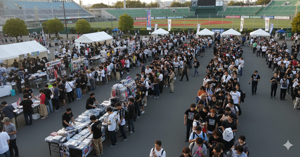 しかし!公式サイトでも「阪神甲子園球場の敷地内スペースの都合上、グッズ販売ブースを十分に設けることができません」「大変な混雑が予想されるため」とアナウンスされているんです…。