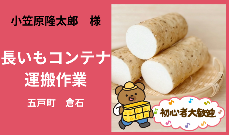 「 小笠原隆太郎 さん」五戸町 長いもコンテナ運搬作業 4月のお仕事カレンダー